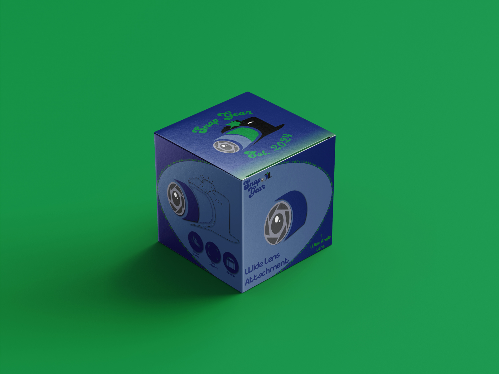I was assigned to design a product with product packaging. My interest in photography led me into the idea of SnapGear, a company who sells camera attachments. I created a variety of logo types as well as box mockups for the product packaging.